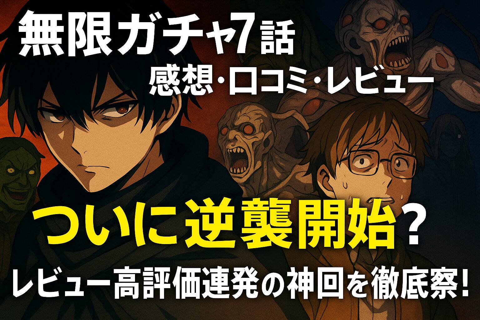 裏切り、融合種の咆哮、カイトの叫び、そして奈落へ続く深淵。第7話は、復讐譚としての『無限ガチャ』がようやく本領を見せ始める分岐点です。外野のざわめきが広がる中、視聴者の口コミやレビューを追うほど“この回を境に作品の評価が変わった”という声がじわじわ増えているのがまた面白いところ。