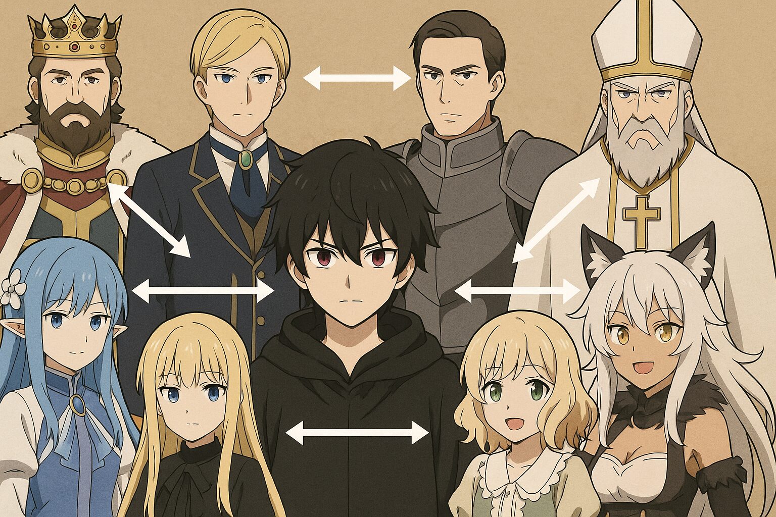 そして国家勢力。ここは外側に張り付く大きな輪のように存在していて、奈落を巡る“外交戦争”がいつ始まってもおかしくない状態にある。奈落の価値を知っている国ほど、奈落を抱えた王国の動向を監視し続けている。国家レベルの思惑が絡み始めた瞬間、無限ガチャは“裏切りの物語”から“世界の再編劇”へ一気にスケールが跳ね上がるんですよね。