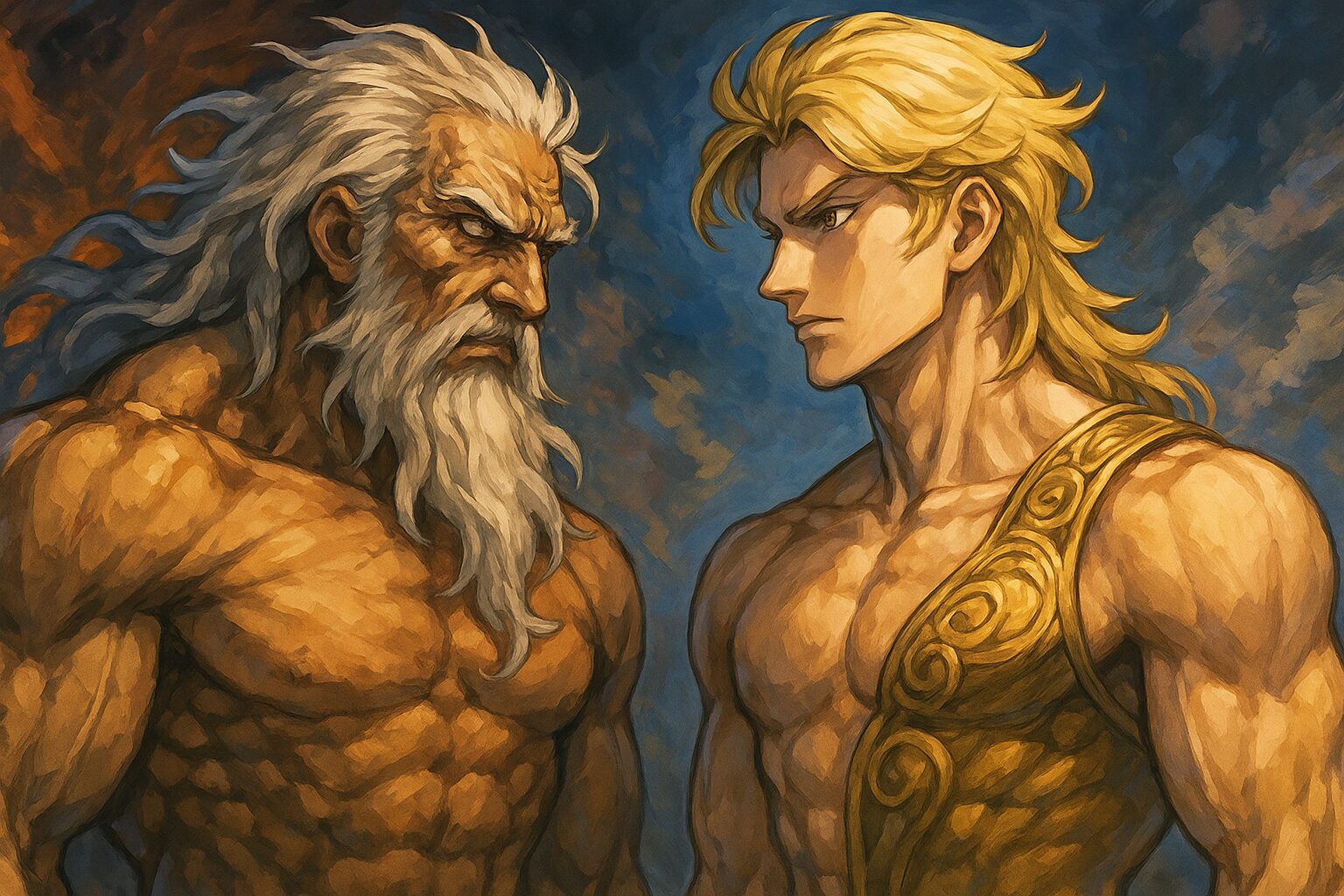 ここで“ミッシングリンク”として浮かび上がるのが、ゼウスが初めて老人の姿になった“その瞬間”です。原作には描かれていません。しかし、ここにこそクロノスの影が濃厚に落ちていると私は感じています。もしゼウスがクロノスの死後、“時間の継承者としての役割”を受け入れる瞬間があったのだとしたら、その場面は必ず老人の姿に近づく変化として現れたはず。父の技を継いだ瞬間、父の死を見届けた瞬間、父の重みを理解した瞬間──それが“老い”という形でゼウスの身体に刻まれたのだとしたら? それだけでもう、物語として完成してしまうほど美しいんです。