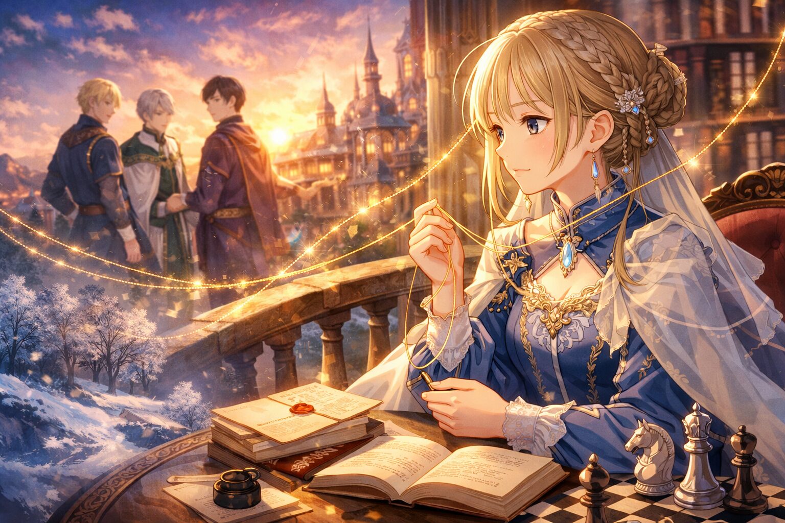比喩の候補をいくつか出すと、婚約者候補たちの関係は「舞踏会の中央に置かれたガラス玉」に近い。誰が触れても光るけど、誰が強く握っても割れる。別の候補としては「網の目」。一本の糸だけ見ても意味がない。糸同士の結び目が意味を持つ。だから“候補が多い”って、単に恋の相手が多いって話じゃなく、結び目が増えるって話なんです。結び目が増えると、ほどくのも難しくなる。ほどけない糸は、やがて絡み、絡みは物語になる。おいしい。