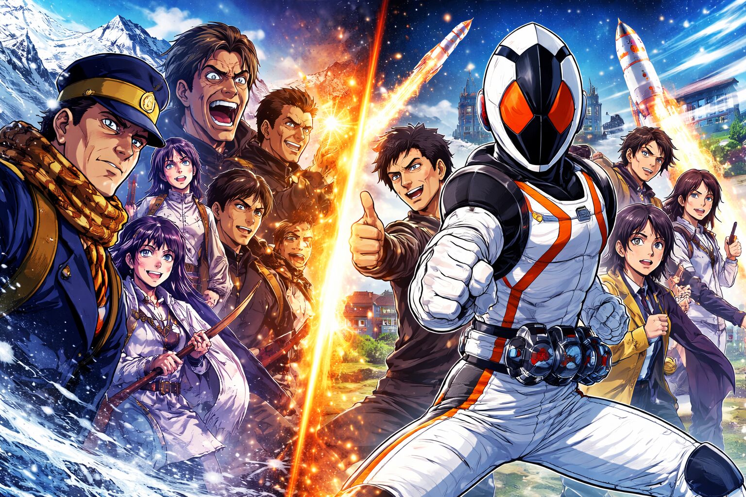 正直に言ってしまうと、この二作品を並べて語ろうとした瞬間、脳内で小さな警報が鳴ります。明治末期の北海道で、金塊を巡って人が死に、裏切り、笑い、狂う『ゴールデンカムイ』。一方で、高校を舞台に「宇宙キター!」と拳を突き上げ、友情と青春を燃料に戦う『仮面ライダーフォーゼ』。時代も、ジャンルも、想定される視聴者のテンションも、あまりにも違いすぎる。