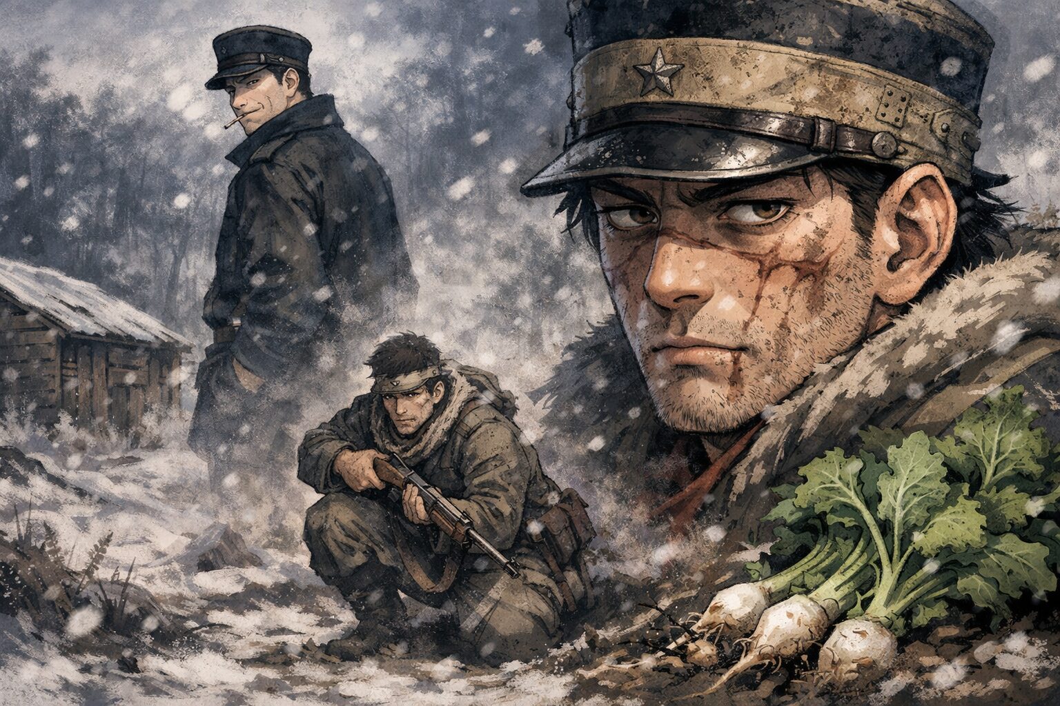 ネットの感想を追っていると、「ノラ坊=野良犬みたいな杉元」という表現をよく見かけます。でも私自身は、犬よりももっと曖昧な存在を想像してしまう。野良の雑草、踏まれても伸びる芽、あるいは寒さに耐える何か。生き物ですらなく、“生存そのもの”を指している言葉のように思える瞬間があるんですよね。