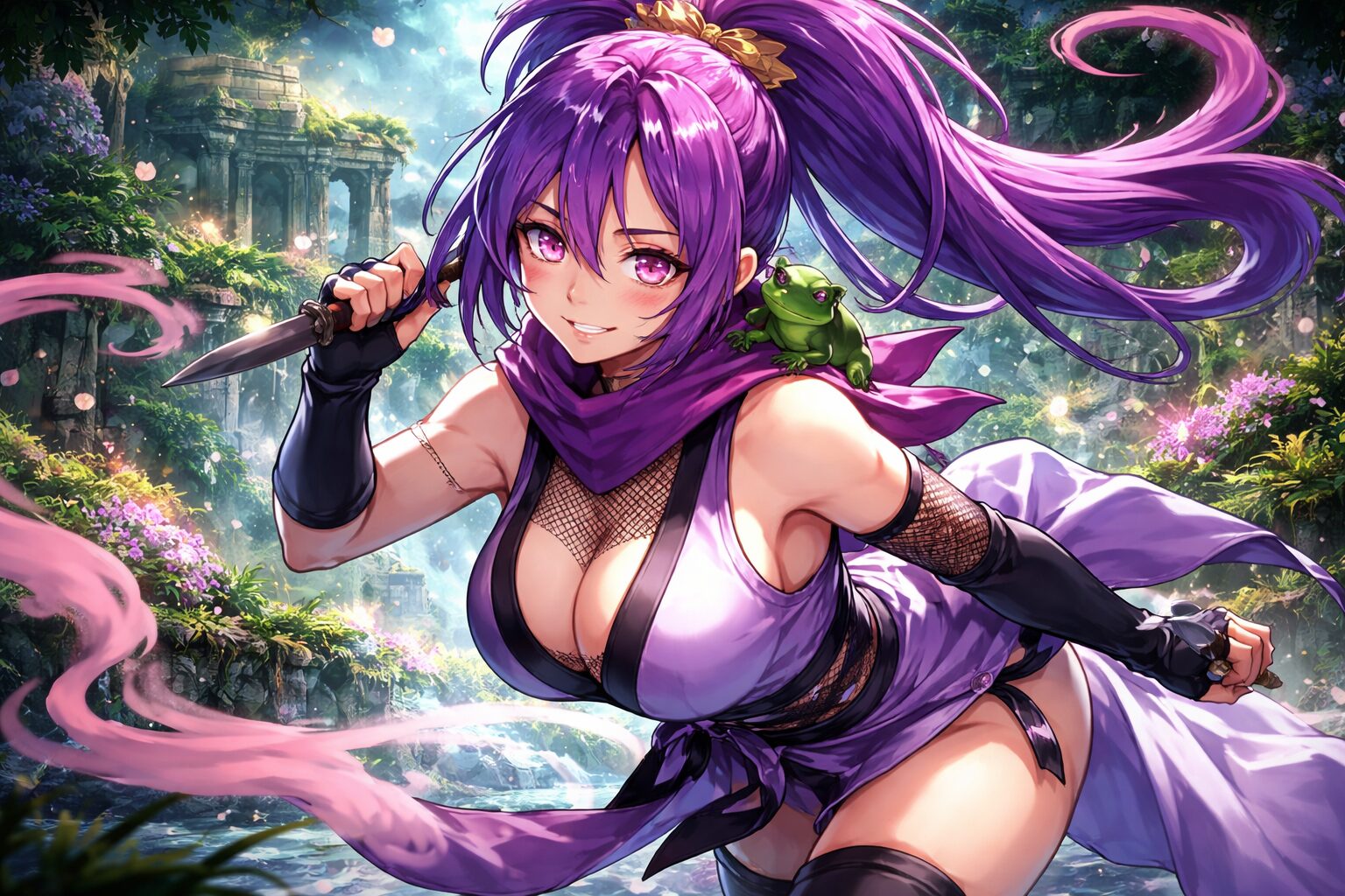 ゆずりはの外見的な魅力は、公式設定としてもはっきりしています。くのいちらしい身軽な装い、女性的なラインを隠さないデザイン、そして余裕のある表情。ここだけを見ると、「色気を武器にするタイプのキャラ」として整理したくなる。