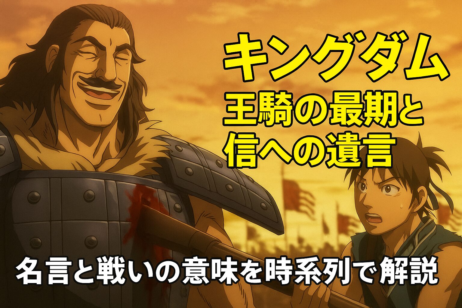 この記事では、王騎の最期の戦いを「時系列」で追いながら、その意味と信への遺言、そして名言たちがどんな重みを持っていたのかを、原作・アニメ両視点から徹底的に掘り下げます。涙で画面が滲んだあのシーンを、もう一度、心で見返してみましょう。