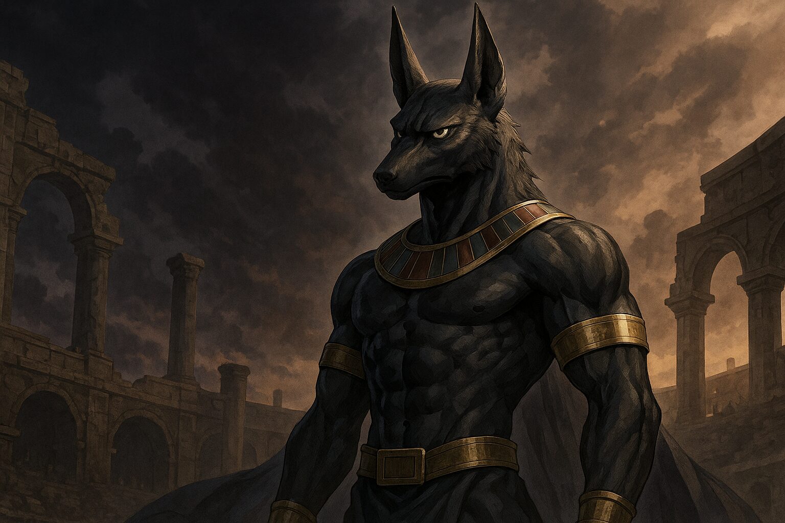 闘技場に立つ前から“物語の空気圧”を変えてしまう神がいる──そう感じた瞬間、私はアヌビスという存在の輪郭をつかんだ気がしました。