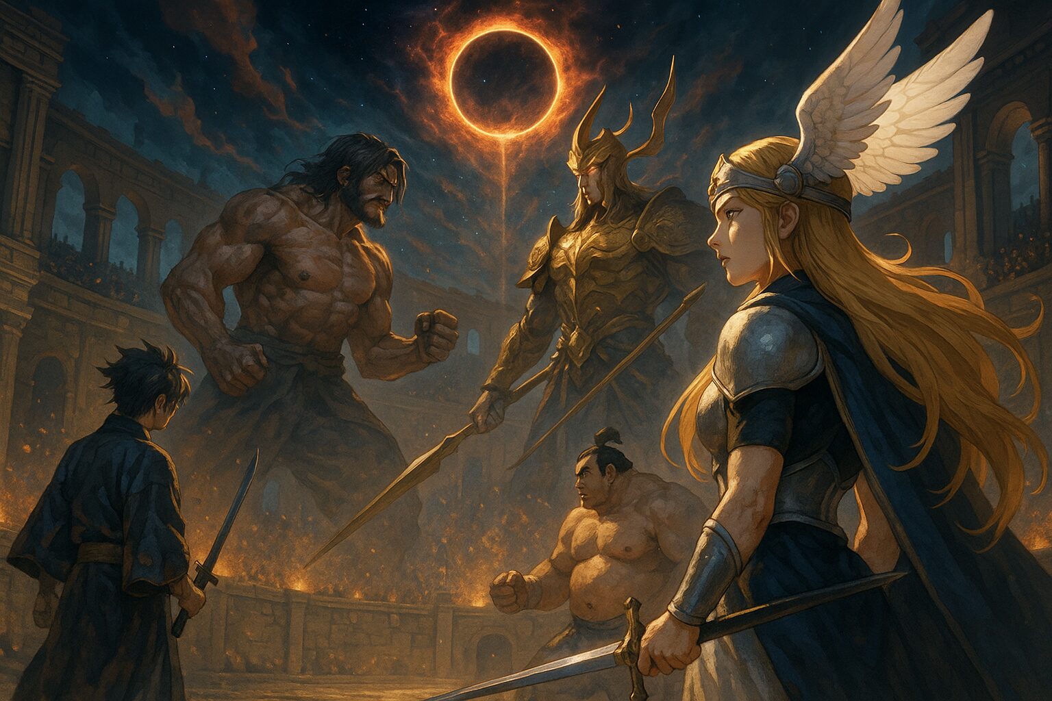 海外のレビューやRedditのスレッドを覗くと、まず目に飛び込んでくるのが「Record of Ragnarok はコンセプトだけで勝ってる」という言葉です。これ、誇張じゃなくて本当にそう書いてある。世界中の神々vs人類、というこの“単純で巨大すぎる舞台設定”が、文化や言語の壁を越えてファンを一気に巻き込んでいく。そのスケール感って、もはや説明はいらないレベルの吸引力なんですよね。人類最強13人、神側13柱。そしてこの“タイマンで決着をつける”という古典的でプリミティブな構造が、海外のファン心理と驚くほど噛み合う。あの巨大な空間に観客として座ってしまったかのような没入感、これは国境を越えて共有されている感覚なんだと思います。