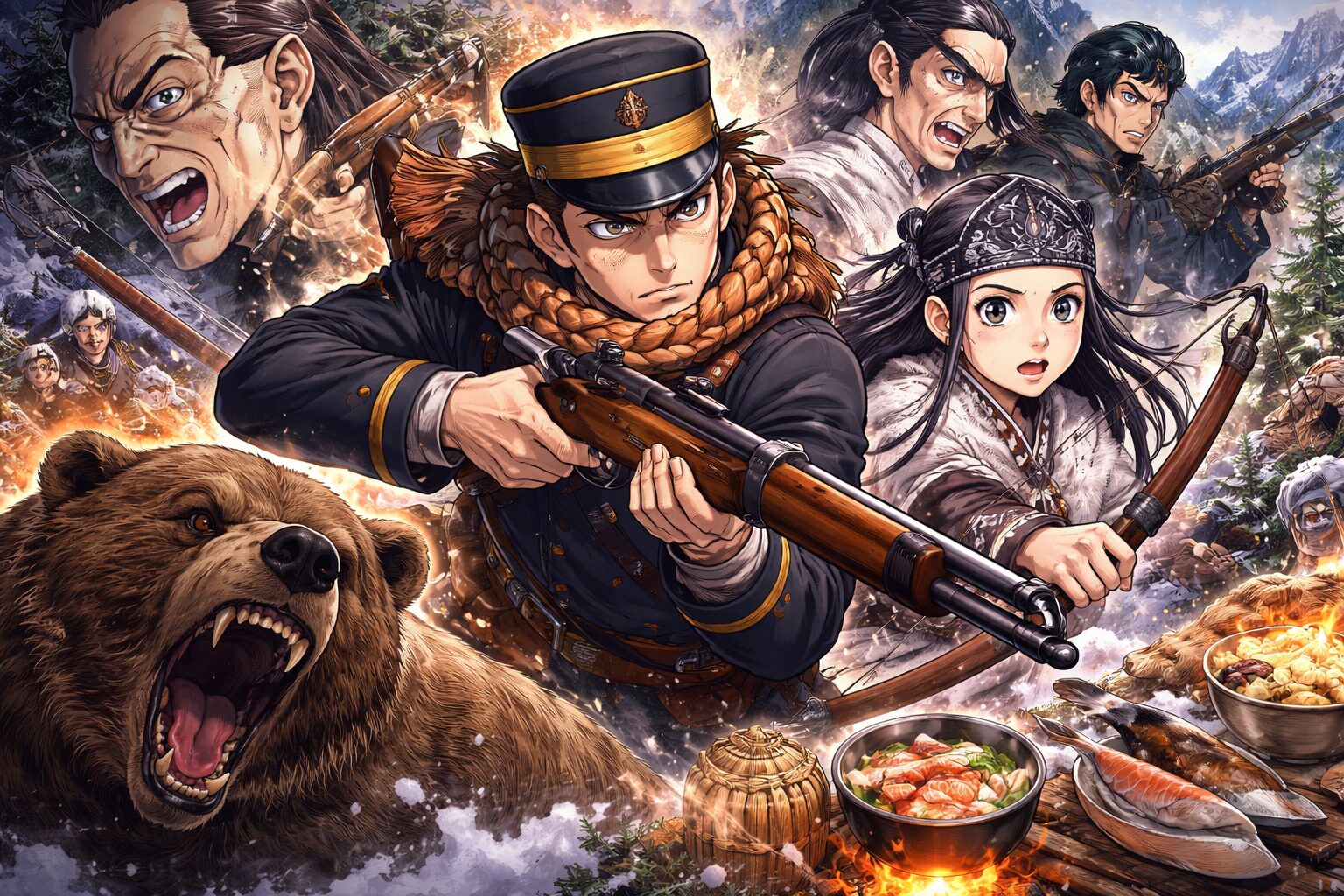 『ゴールデンカムイ』を初めて読んだとき、多くの人が感じるのは「なんだこの情報量……なのに、止まらない」という奇妙な感覚ではないでしょうか。狩猟、軍事、アイヌ文化、料理、地理、歴史。普通なら一つひとつ噛み砕いて説明しなければ破綻する要素が、まるで雪崩のように押し寄せてくる。それなのに、ページをめくる手は止まらない。この違和感、正体はかなり明確です。