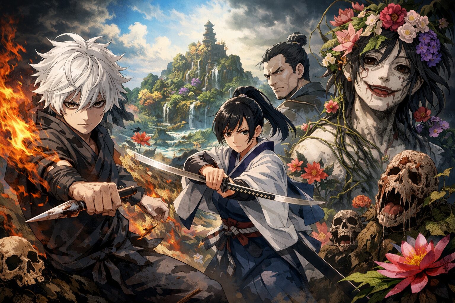 地獄楽を「忍者バトルもの」と一言で片づけるのは、正直かなりもったいない。確かに戦闘は派手で、能力表現も尖っている。でも、読み進めるほどに、バトルそのものが“主役じゃない”ことに気づかされます。
