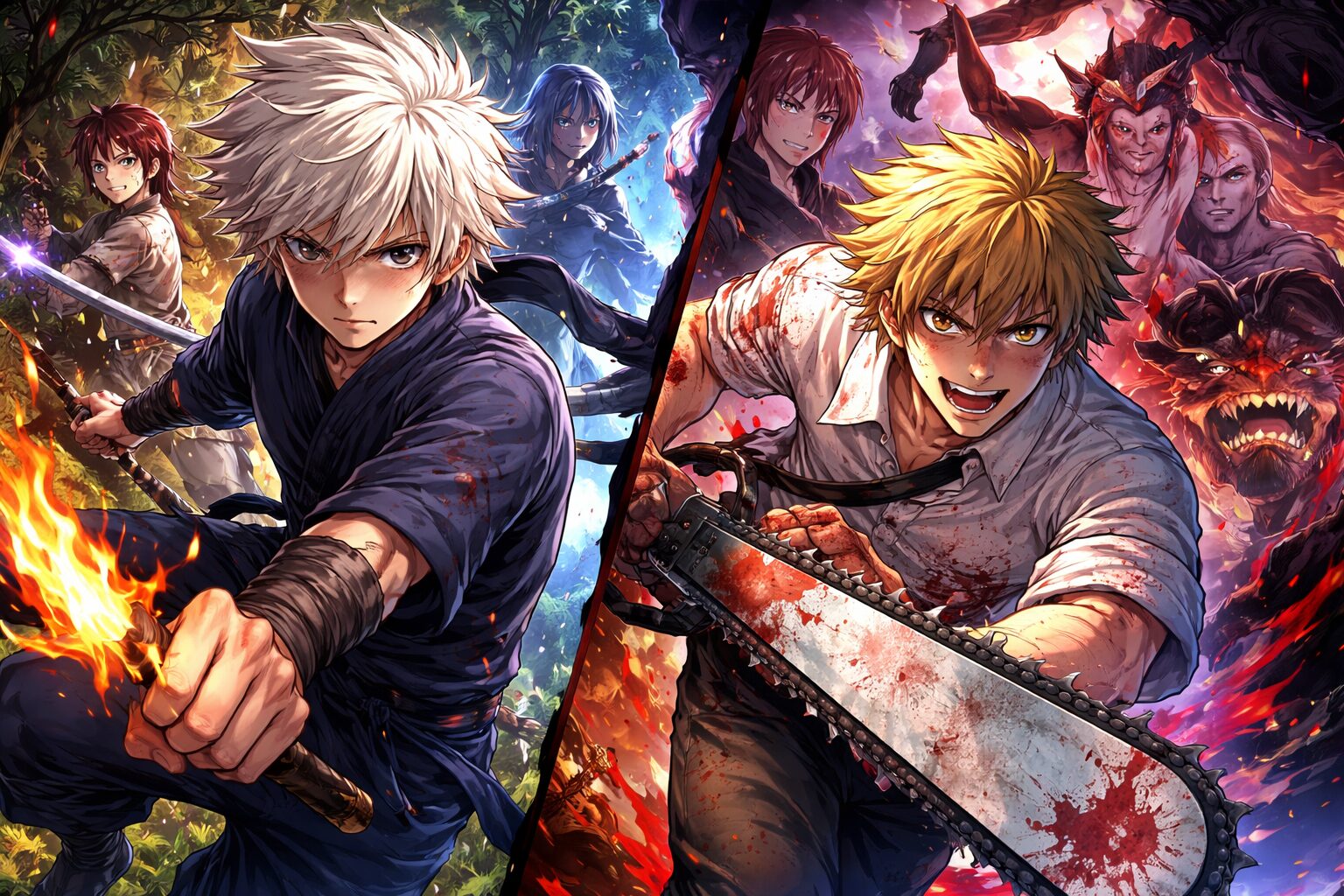じゃあ、ここで一度整理しましょう。地獄楽とチェンソーマンは、似ている部分と違う部分が、かなりはっきり分かれています。似ているのは「暴力表現の強度」「主人公が社会からはみ出している点」「世界観が基本的に救いにくいこと」。ここまでは、ほぼ誰が見ても納得する共通点です。
